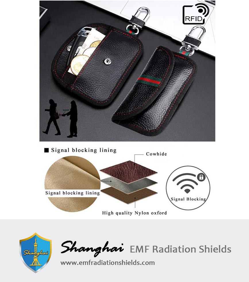 Faraday bag is made of high quality nylon oxford and cowhide, which provide not only stylish looking but also soft and comfortable touch feeling. Well-chosen signal blocker material ensures 100% protection for your car key.