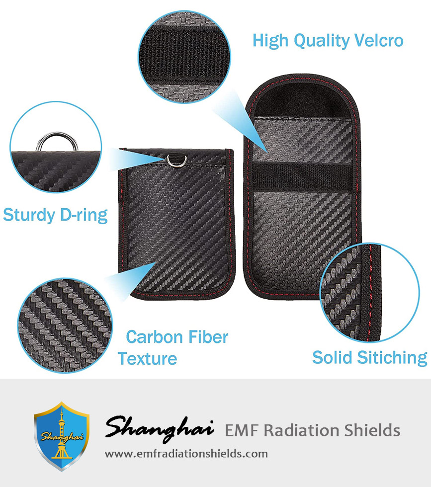 Our Faraday key fob protector is made of high-quality carbon fiber textured material and two-layers of shielding materials, reliable durability, quality top stitching, scratch, and tear-resistant structure
